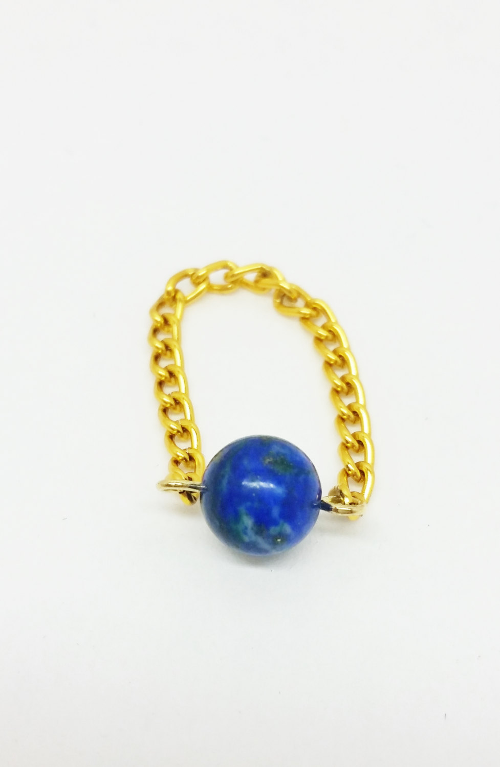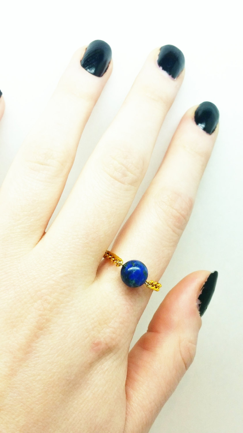 These beautifully simple rings are made with natural malachite azurite and a chain band. They are lightweight and never get in the way. I usually wear many of these gemstone rings at a time!