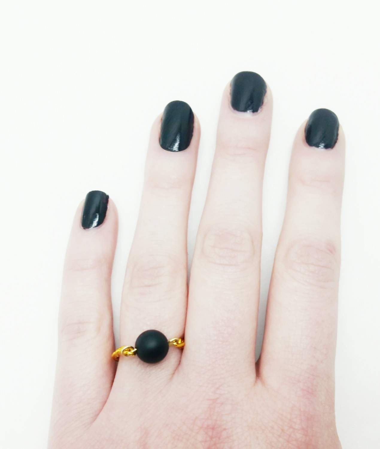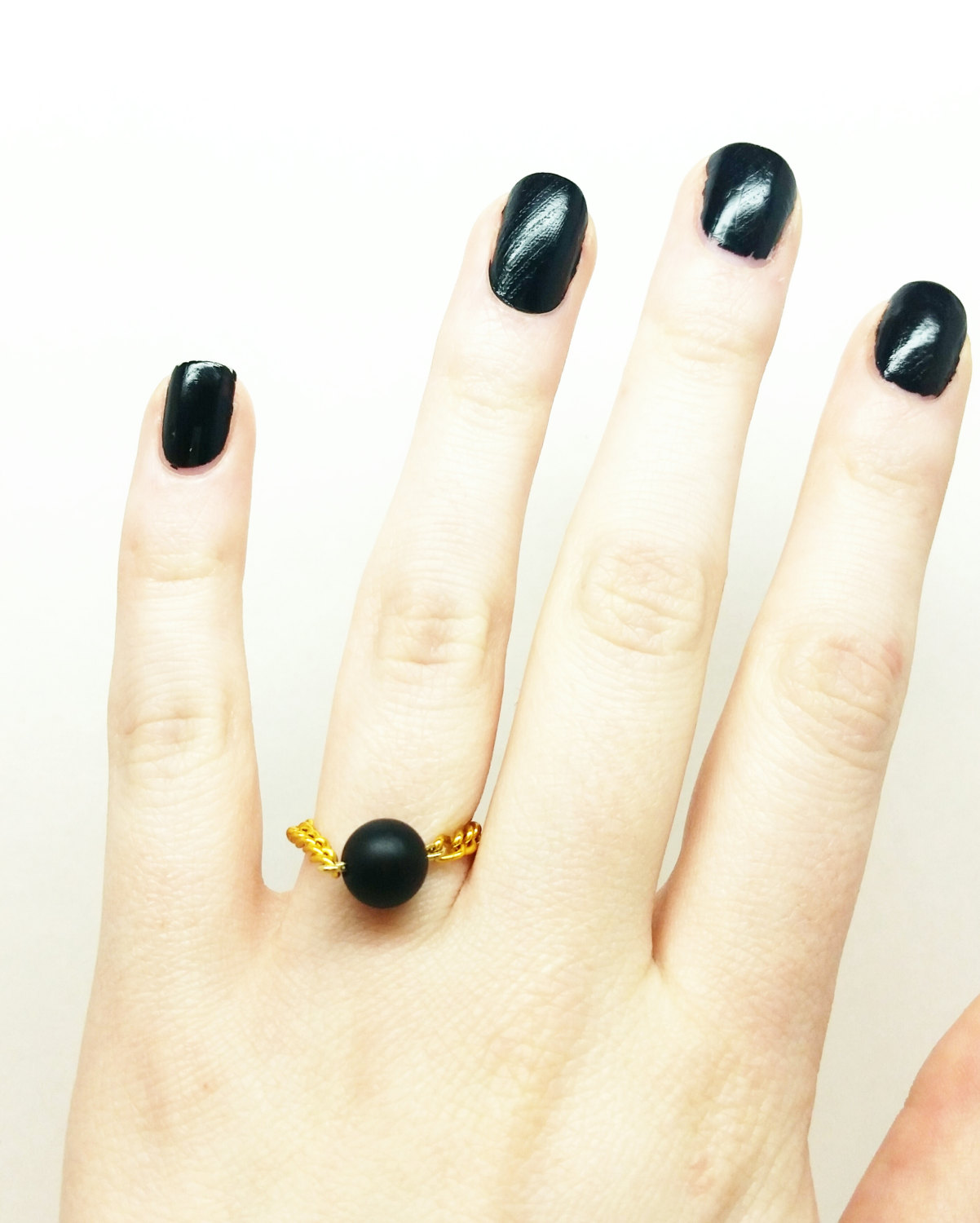 These beautifully simple rings are made with natural onyx and a chain band. They are lightweight and never get in the way. I usually wear many of these gemstone rings at a time!