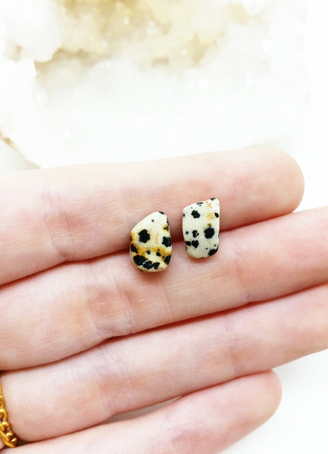 Dalmatian Jasper Earrings Crystal Mineral Studs
