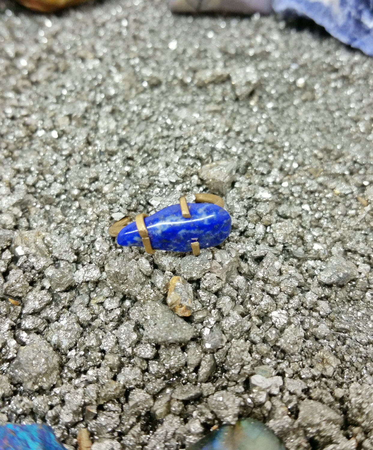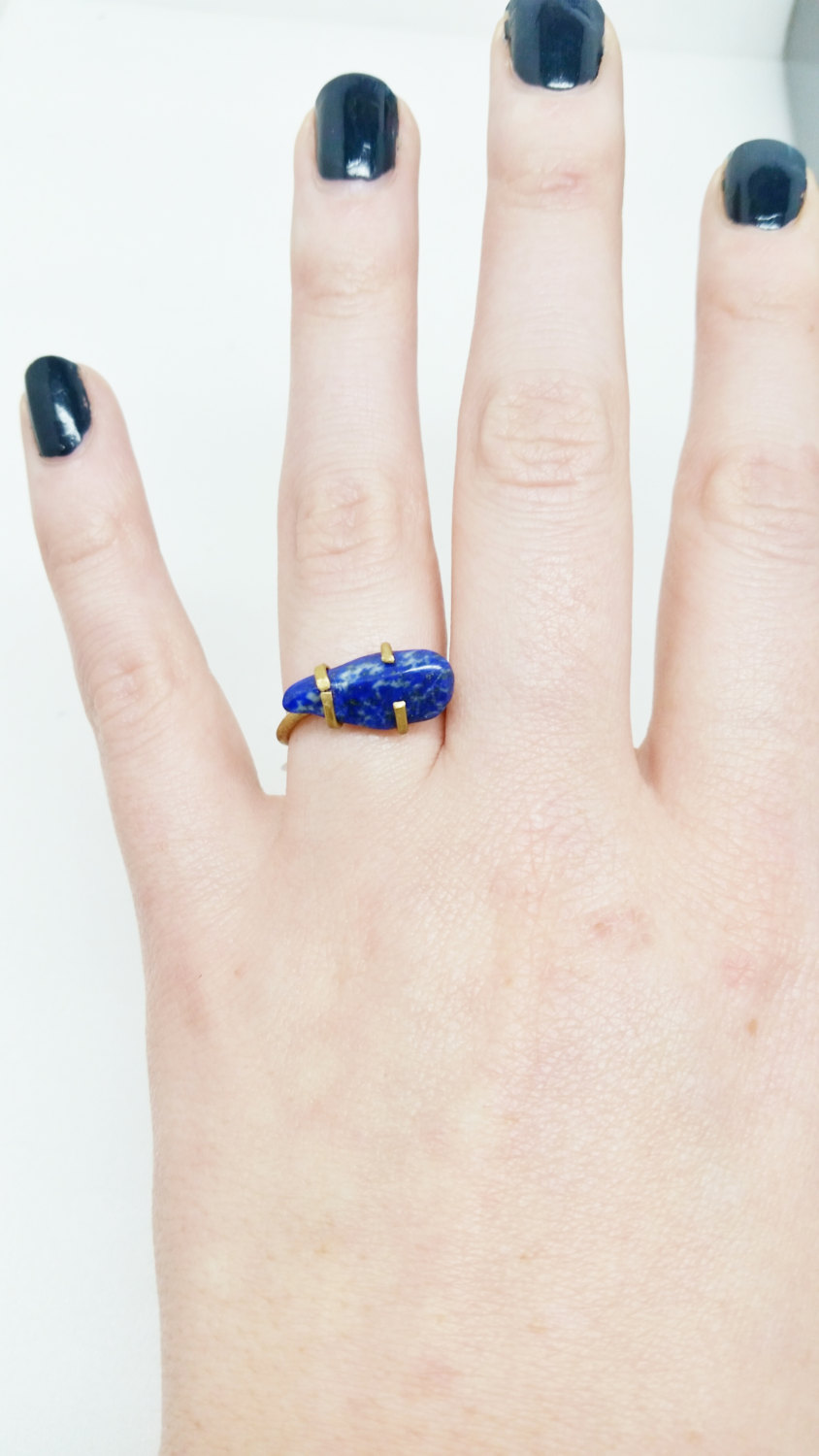 I hand crafted this brass ring with a brilliant lapis lazuli specimen for a one of a kind ring as unique as you are! This ring is a size 6.5 but will also fit slightly smaller fingers.