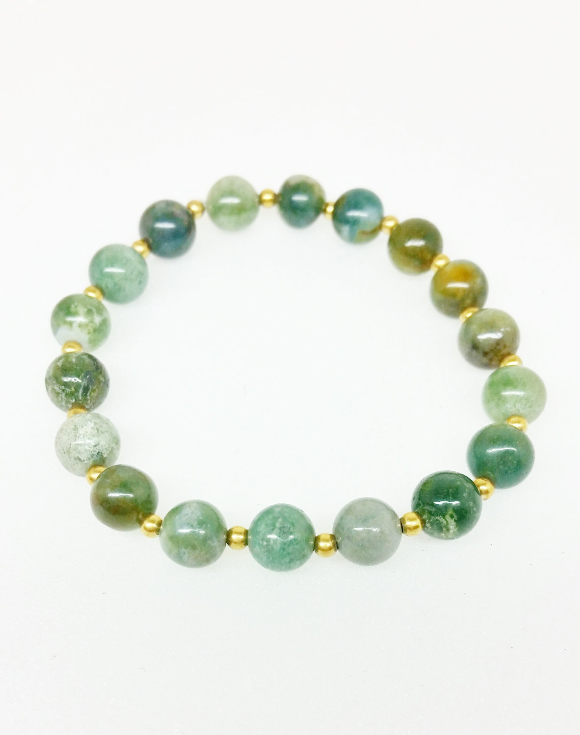 Agate and Brass Healing Energy Stretch Mala Yoga Bracelet