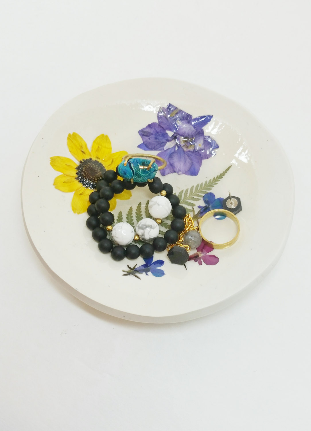 Let me guess, taking your jewelry off is often one of the last things you do at the end of the day, so sometimes you misplace your favorite earrings or ring? Or even worse, you take off your rings next to the sink, and then scramble to grab them when you inevitably knock one in? Yeah, me too. That's why I knew I needed to design lots of unique ring dishes so you can find the perfect one for your favorite jewelry. BONUS: These also make fabulous tealight holders! A lot of my customers like to keep a couple of these on hand as easy gifts for coworkers and friends, because everyone loves the vibrant real flowers.