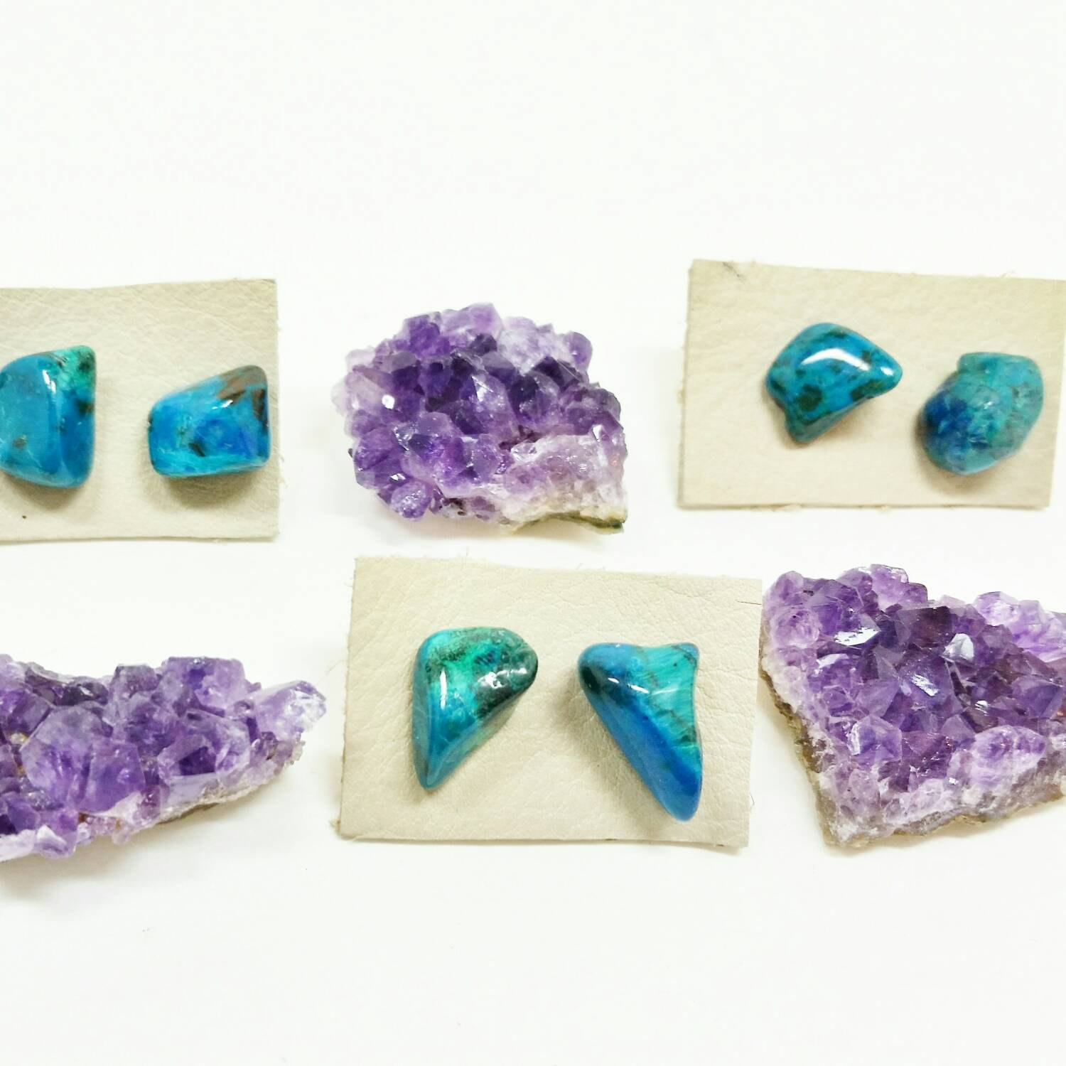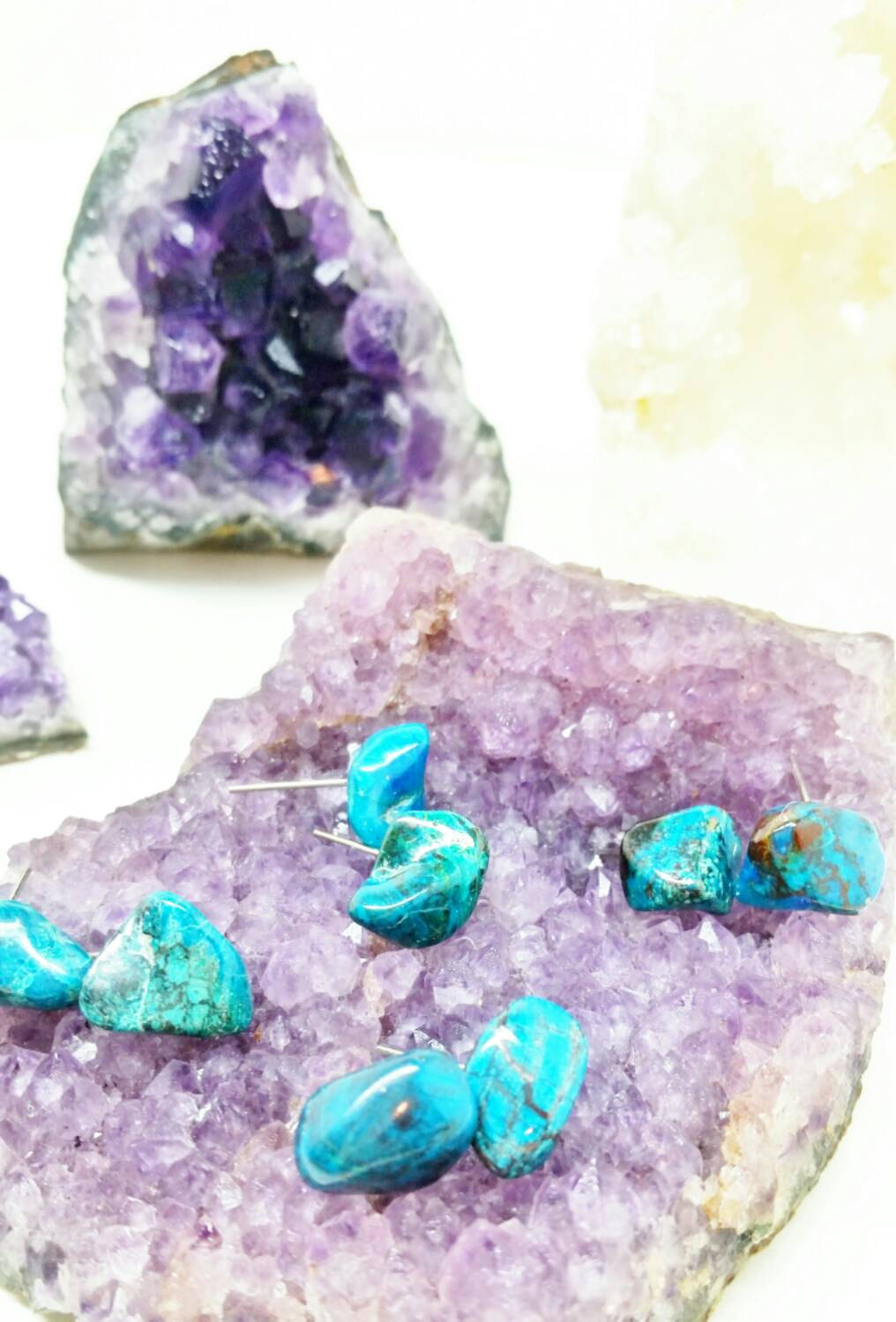 Raw Crystal Earrings Chrysocolla Mineral Stud Earrings