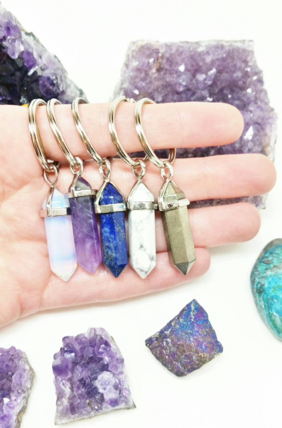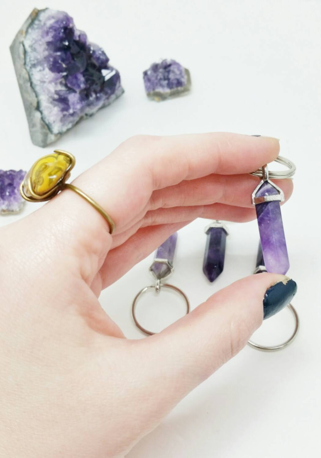 Theis beautiful amethyst point will make a great addition to your keychain, and they also make the perfect little gift! The stone measures about 1.5 inches long. These are also available in a variety of other stone types in my shop. They are also available as necklaces!
